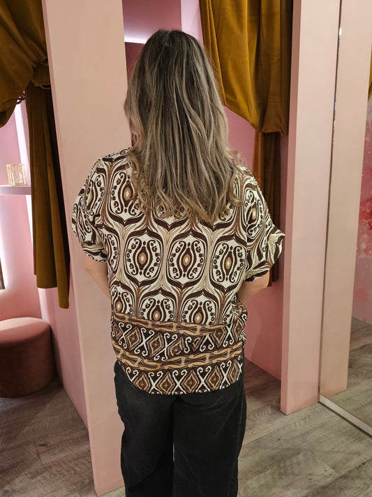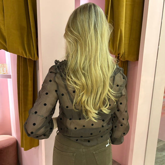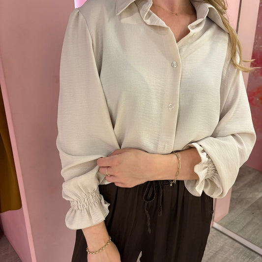 UitverkochtBlouse rufflemouw 21508-2 Beige