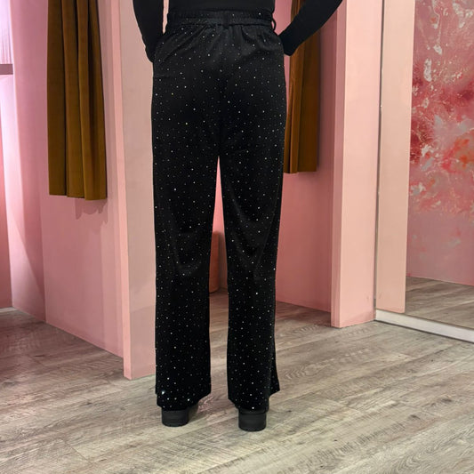 Velvet glitter wide leg 250156 Zwart