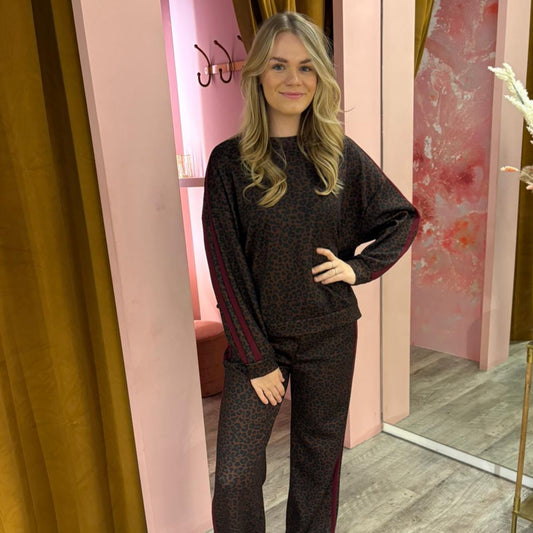 UitverkochtWide leg leopard stripes 12383 Bordeaux