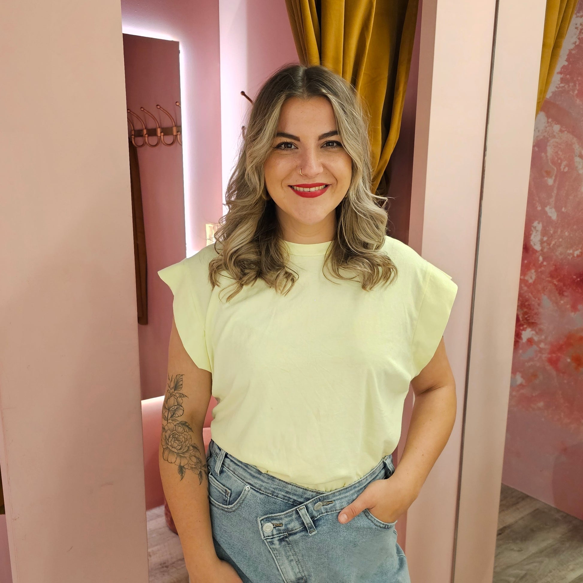 Basic shirt met wijde korte mouwen