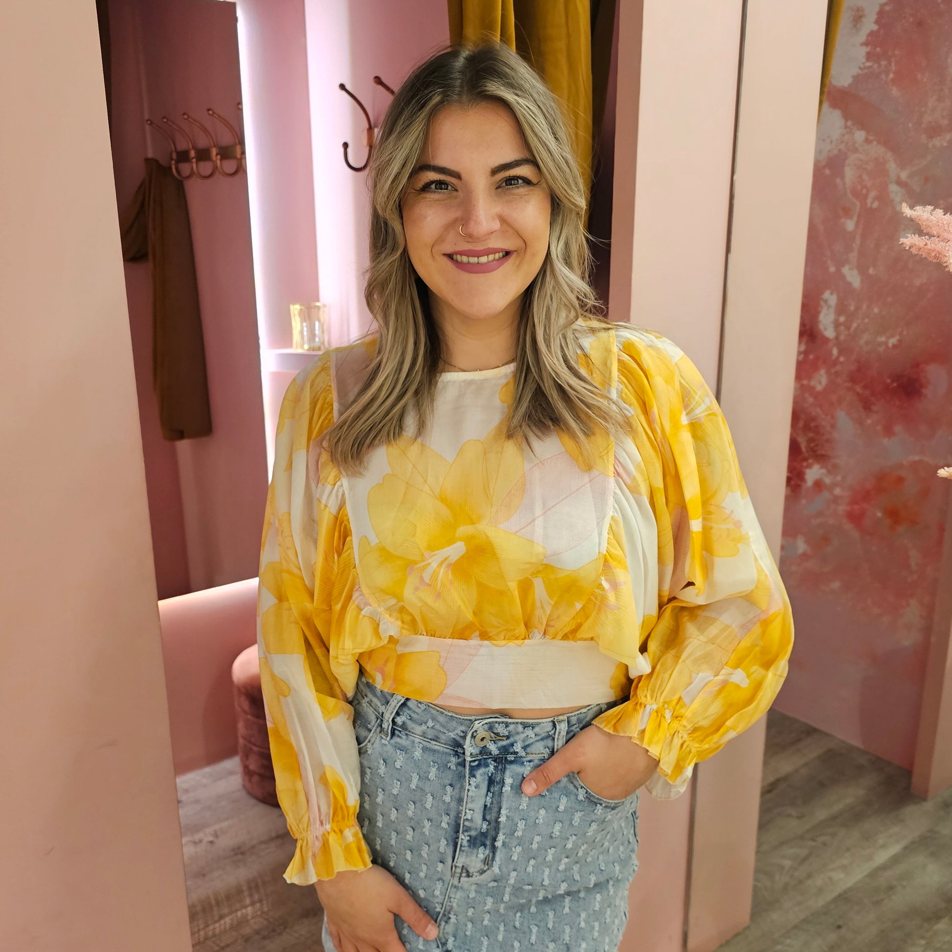 Blouse dolmanmouw 11418 Geel