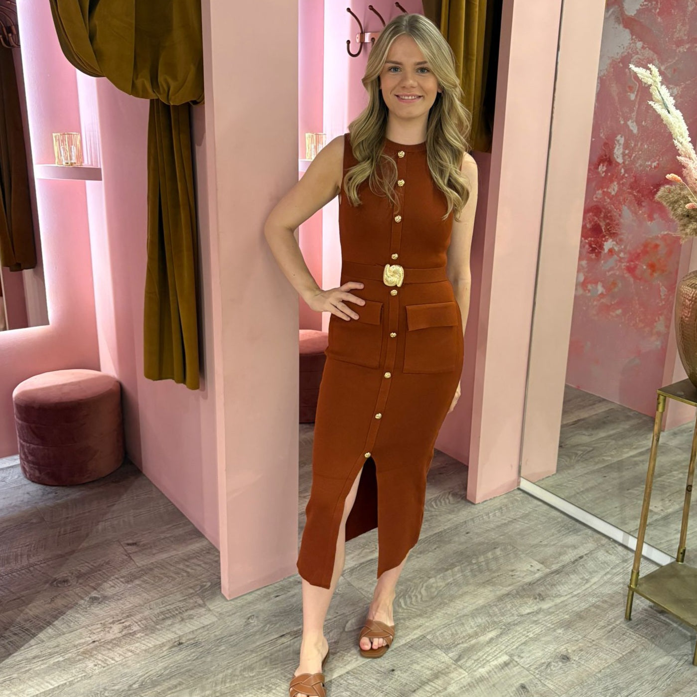 Mooie dikkere kwaliteit halflange jurk met een split voor