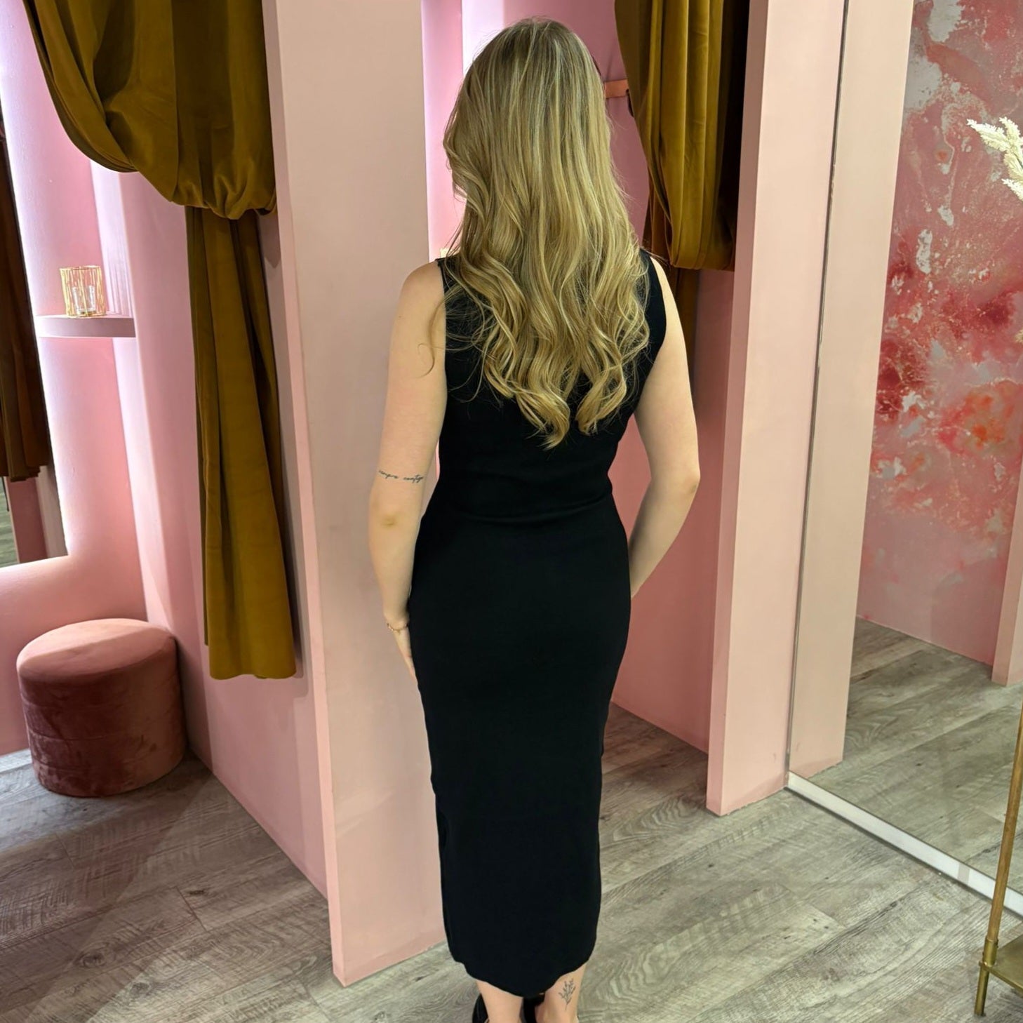 Mooie dikkere kwaliteit halflange jurk met een split voor