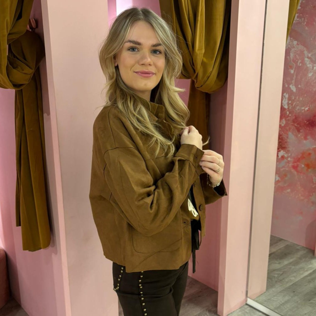 Suedine crop jas 01231 Camel